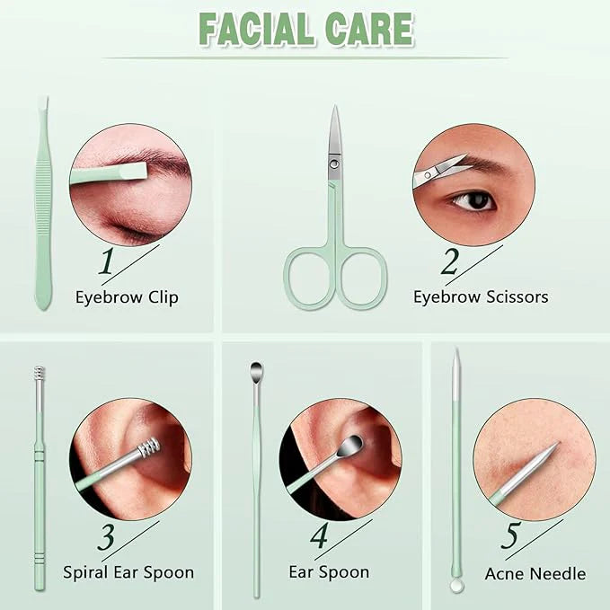 Manicure Nail Clipper Kit - 16 Pieces for Facial Care, Hand Care, Foot Care
